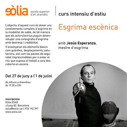 La Federació Catalana d’Esgrima, col·labora amb la companyia de teatre Dagoll Dagom en el musical de Scaramouche que s’estrena el proper mes de setembre al teatre Victoria de Barcelona. Aprofitant aquest escenari, des de l’escola superior d’art dramàtic Eòlia s’ofereix un curs intensiu d’estiu d’esgrima escènica, en el que tots els Federats de la FCE que estiguin interessats, poden participar i gaudir d’un preu especial.